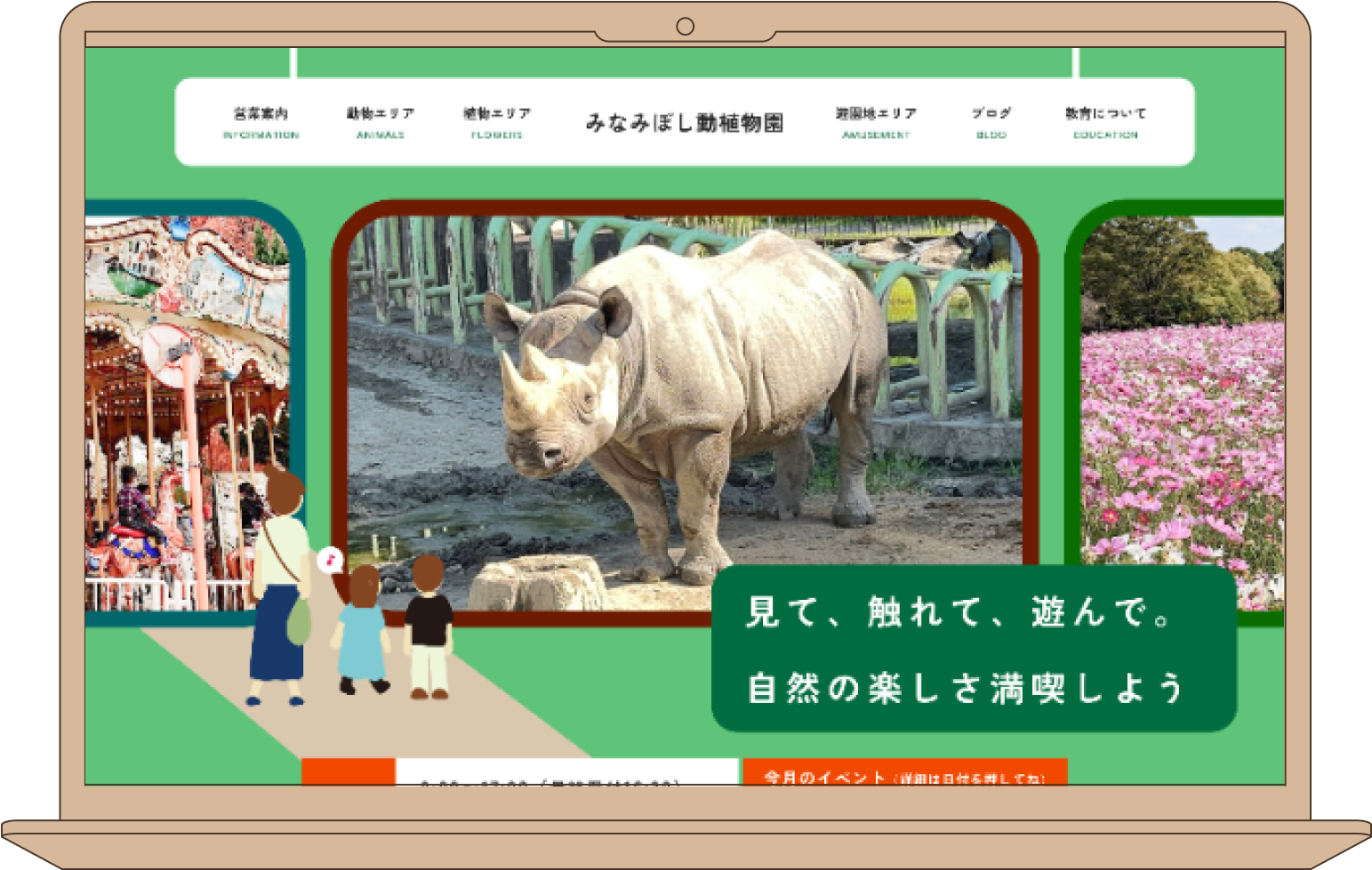 また、メインは小さいお子さんでも1人でも複数人でもいろんな人が動植物園を楽しんでいる様子が